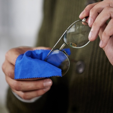 ارفع النظارة باتجاه الضوء لتتأكد من أنها الآن نظيفة وصافية، وإذا لاحظت وجود خطوط أو شوائب على العدسات قم بتلميعها باستخدام قطعة قماش مصنوعة من المايكروفايبر.