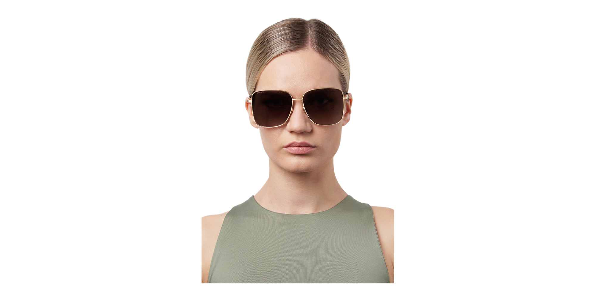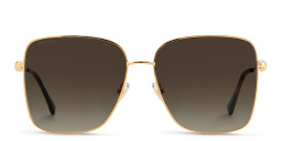 Celebrate your sense of style with Hester square women's sunglasses by Jimmy Choo. This gold metal pair of glasses exudes a minimalistic look and is enhanced with white, round rhinestones on the ultra thin temples for an eye-catching look. The temples extend towards comfortable and elegant havana tips. The brown shade lenses ensure UV protection throughout the day.